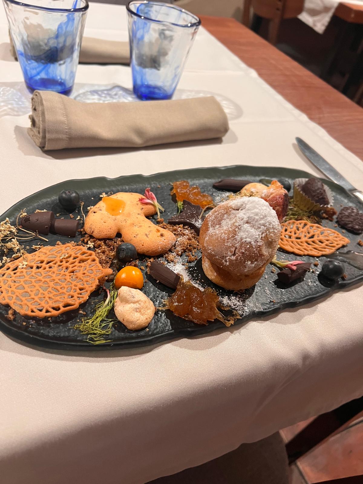 (Degustació de petits dolços amb textures de xocolata i bolets)